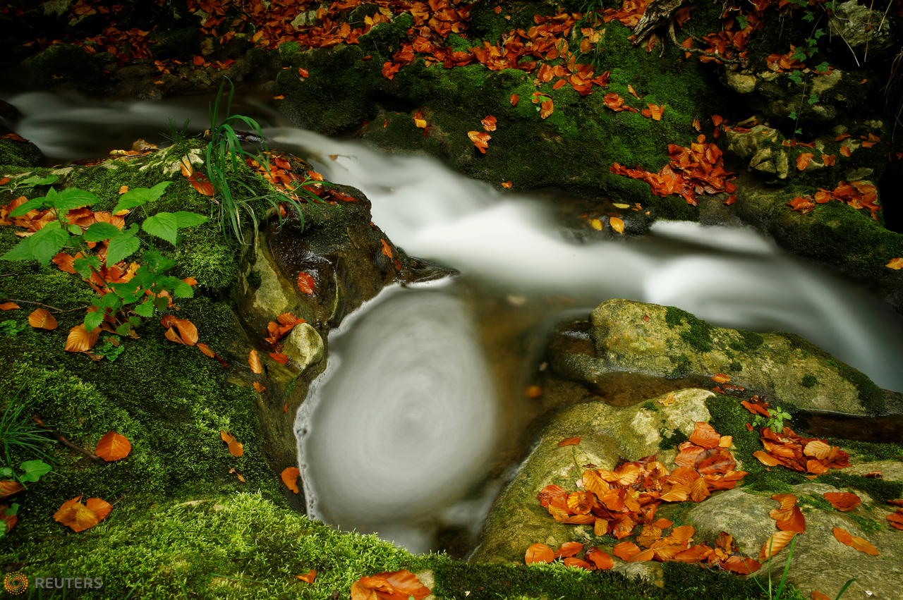 Le Veyron stream is pictured on an autumn morning at La Tine de Conflens in La Sarraz, Switzerland October 4, 2017. Picture taken with a long exposure. REUTERS/Denis Balibouse - RC171C9F4500