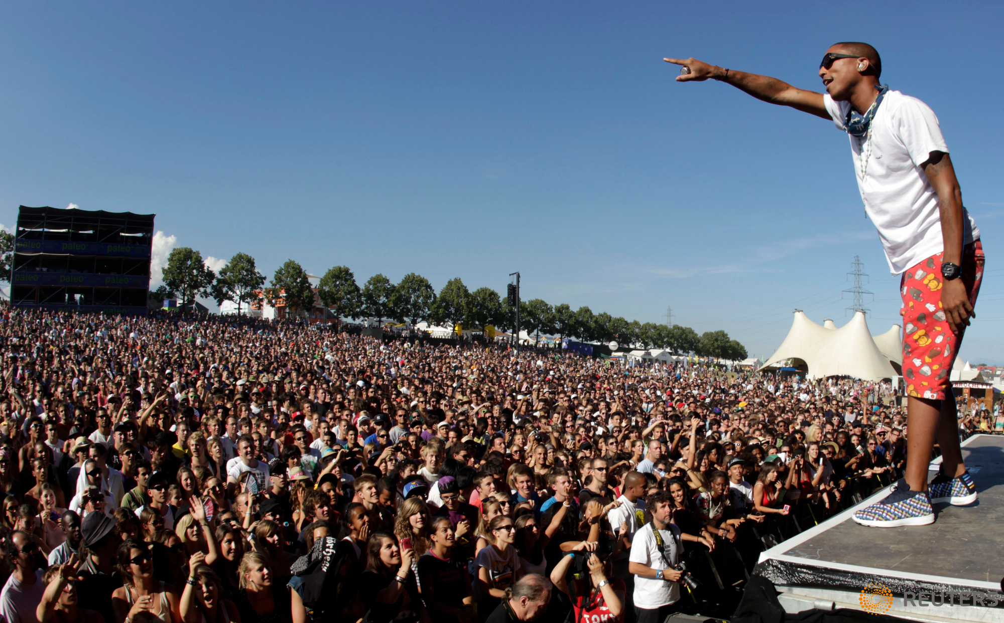 Singer Pharrell Williams of N.E.R.D. performs at the 35th Paleo music festival in Nyon July 20, 2010. REUTERS/Denis Balibouse