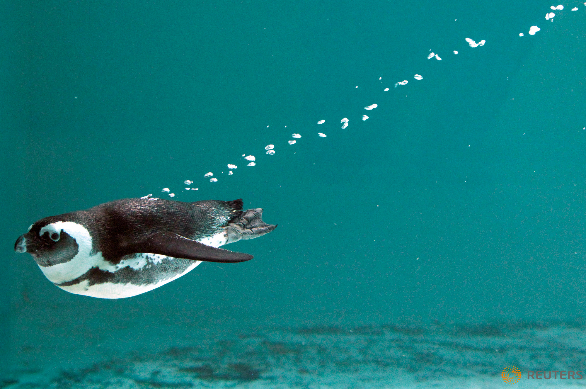 An African penguin swims in his pool at the Servion Zoo in Servion near Lausanne October 4, 2010. REUTERS/Denis Balibouse